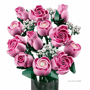 Njut av ett uppslukande projekt när du minutiöst skapar LEGO buketten, som innehåller 12 rosa rosor i olika stadier – upptäck 4 rosor i full blom, 4 rosor som håller på att slå ut och 4 rosenknoppar. Rosorna har flera rosa nyanser för att se mer äkta ut, och buketten innehåller också 4 söta kvistar av brudslöja med små vita blommor. Setet är perfekt som ett solo- eller grupprojekt och innehåller 3 häften med bygginstruktioner så att du kan knyta starkare band över blommorna med vänner eller familj innan du stolt visar upp rosorna som en blomsterdekoration.